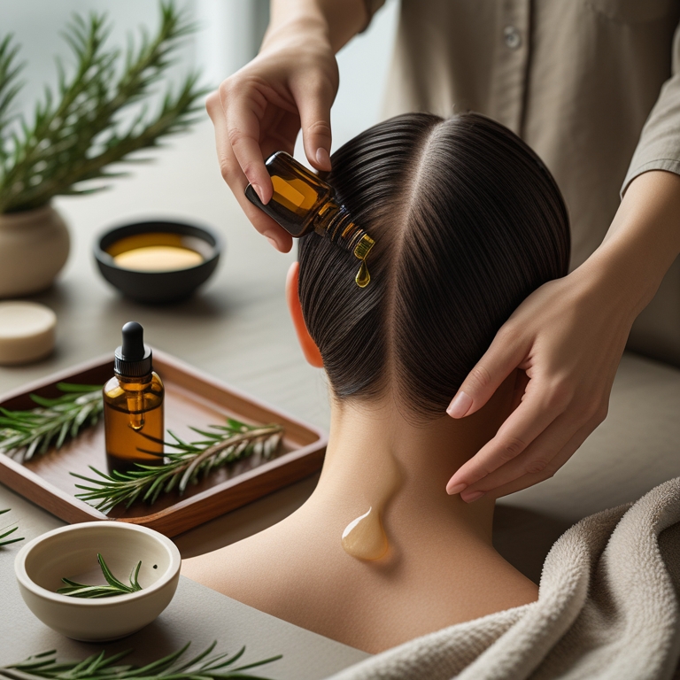 • olejek rozmarynowy w szamponie: do 250 ml szamponu dodaj 5–10 kropli olejku rozmarynowego (ok. 0,02–0,04% obj.), masuj skórę głowy 2–3 minuty, spłucz, stosuj 2–3 razy w tygodniu, wykonaj test płatkowy przed użyciem.